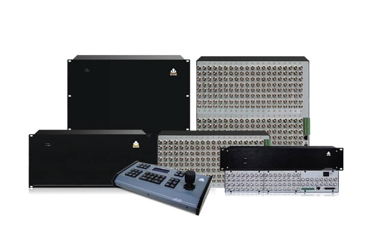 监控矩阵是一种集视频切换、音频切换、报警管理、跟随控制、IP网络选配控制于一体的完善的视频监控系统设备。可以把任何接