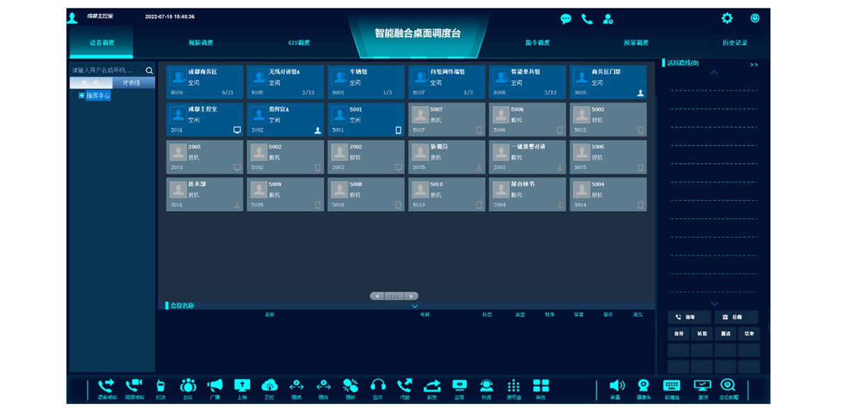 融合通信系统将语音、视频、数据进行高度融合,通过"一套平台一个操作台"即可实现对系统汇接的各类通信终端、视频终端、数据资源进行统一指挥调度,满足不同行业用户的各类日常管理和应急处置的指挥调度需求。