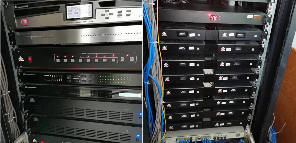 根据客户对会议室建设的需求,经过我公司技术工程师对用户需求的认真分析,该会议室采用分布式系统架构来组建,分布式系统构架简约,会议系统节点仅通过网线即可接入。该会议室系统主要由显示系统、会议扩声系统、分布式坐席系统、智能中央环境控制系统、远程音视频会议系统组成,各系统集成到一套分布式操作软件上进行统一管理调度。