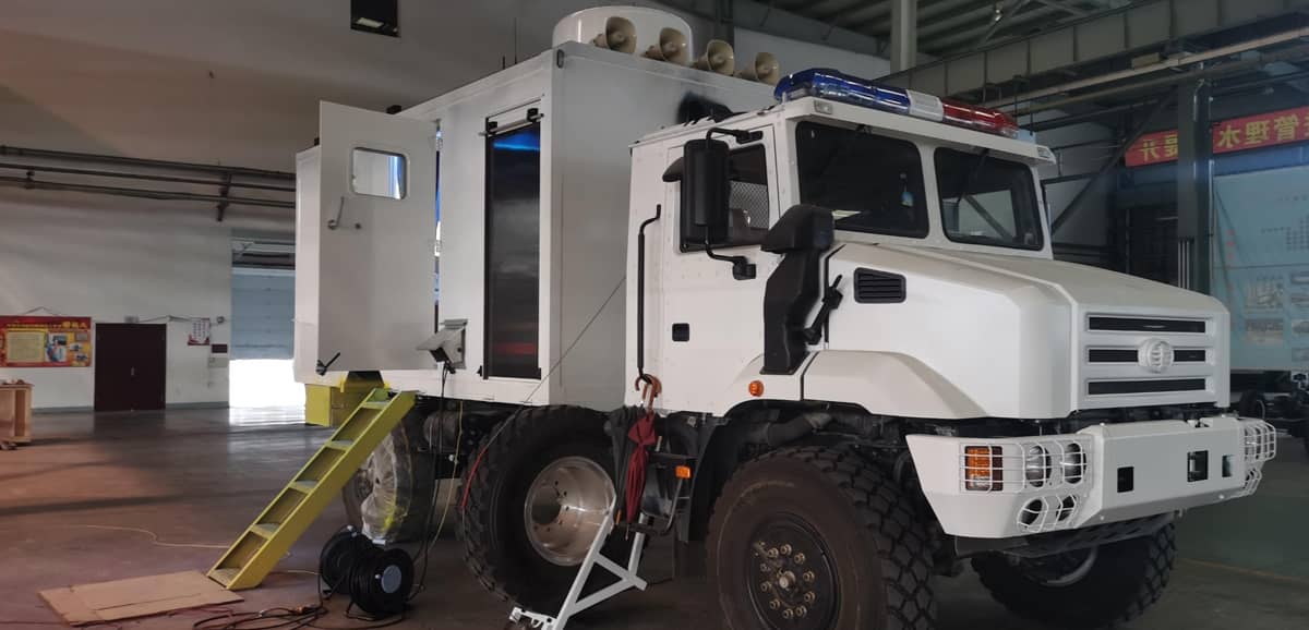 执法指挥车在现场开通有线、无线和计算机综合业务、通信网络业务,对现场通信进行组织、管理和控制。