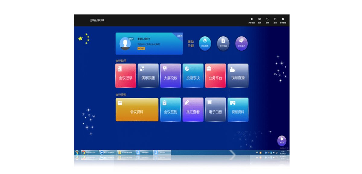 本项目采用讯维无纸化会议系统,可提供丰富的会议功能,协助会议使用方对整个会议流程进行高效便捷的控制,对会前准备,会中管理以及会后归档操作提供多种服务功能,保证会议正常、有序、安全地进行。可支持签到、多媒体播放、投票表决、呼叫服务、办公文稿阅读、邮件收发等多种常见的会议功能,又集成有手写批注、同步文稿演示等高级会议功能,充分满足参会者的各项需求。在整个会议过程中,无纸化会议系统可以为参会人员提供绝佳的数字化办公体验,所有的操作均通过一台终端完成,简化了纸质文件的使用,极大推进无纸化会议办公水平的发展与进步。