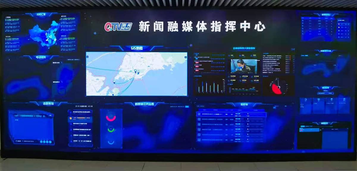 融媒体指挥中心提供了报社纸媒和新兴媒体融合的平台。指挥中心以大屏幕拼接显示墙为中心,集合计算机网络、数字远程会议、图像矩阵、指挥控制、背景音响、供电保障、基建装修等系统或项目。系统采用模块化技术,具有良好的易用性、通用性和扩展性,能够满足新闻采集、信息处理、终端显示、决策指挥、调度监控、视频会议等功能需求。