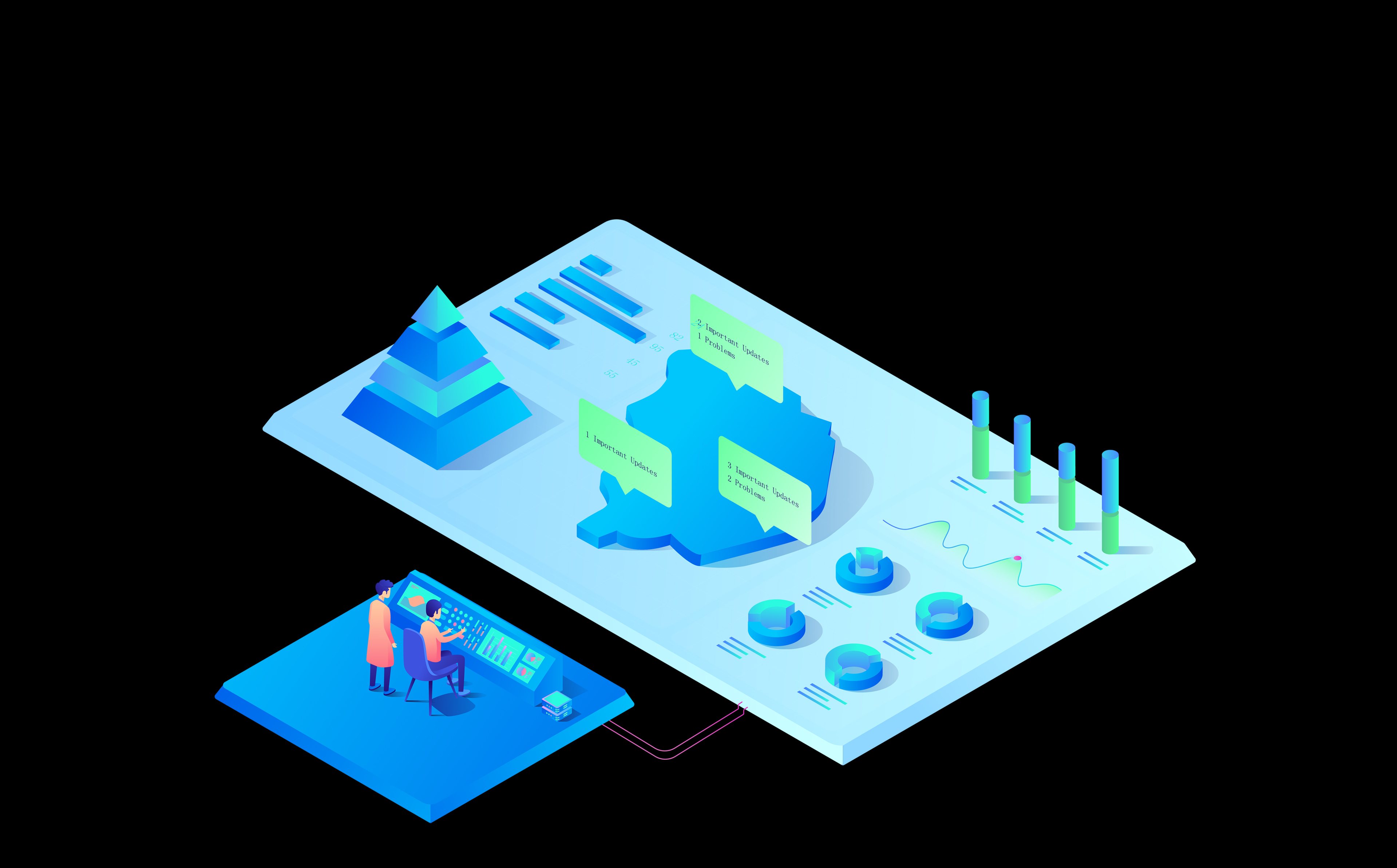 生成运维可视化数据(如能耗、温湿度、使用率等)、网络拓扑、检测预警、预案管理、音视频控制、资源管理、用户管理、权限管理、工单派发等多种智能模块。