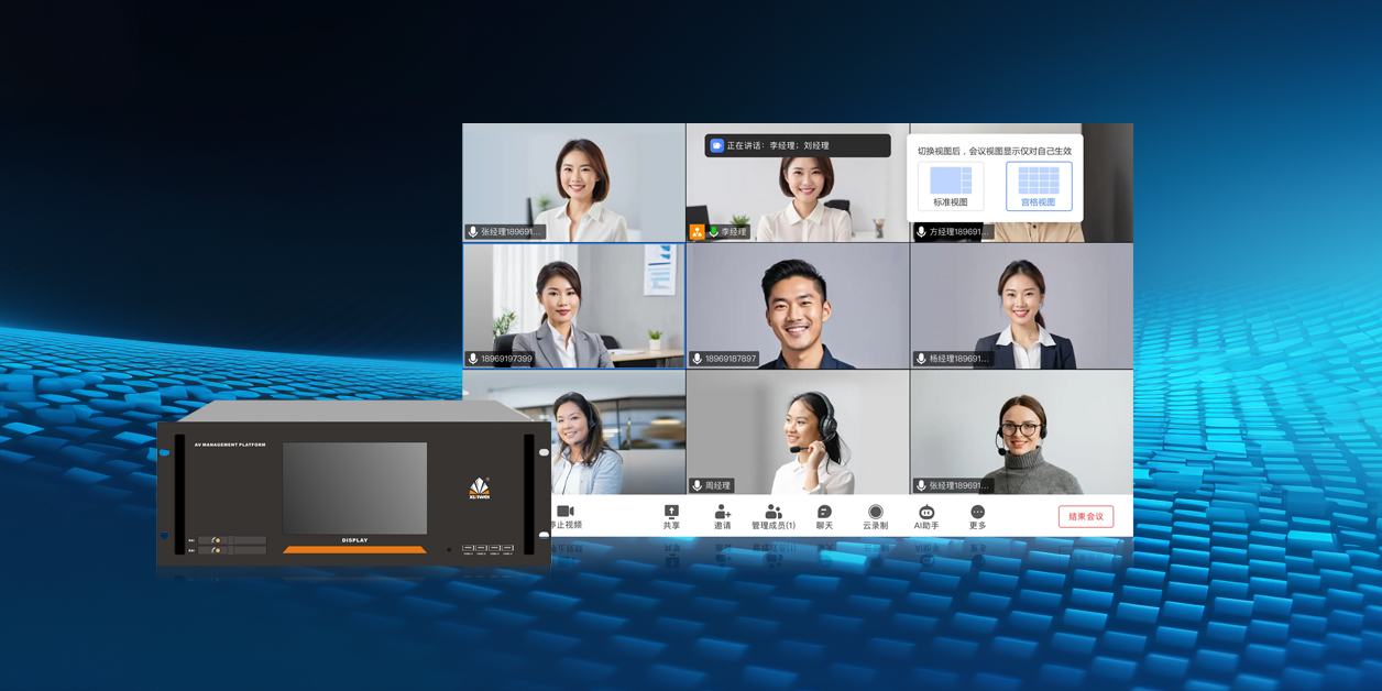 集视频会议、视频录播、中控管理、AI应用、可视化等多种强大功能于一体,采用可视化软件控制,为企业打造高效、便捷、智能的会议体验
