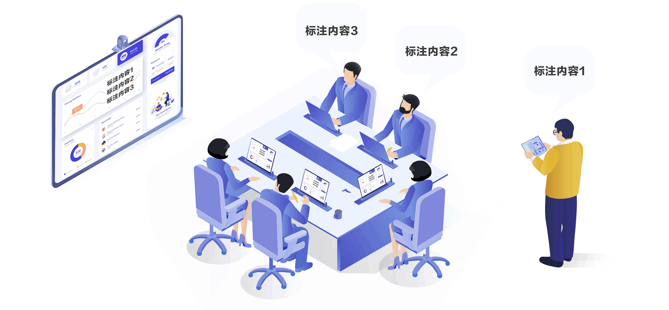支持全方位会议互动体验,主讲人、参会者间可实现多方交互批注,标注内容同步至其他参会者屏幕、主会屏及其他屏幕,参会者屏幕可与主会屏跟随同步显示,也可单独显示本地内容,用户可自由切换,实现参会者之间零距离实时互动体验,实现高效会商决策。