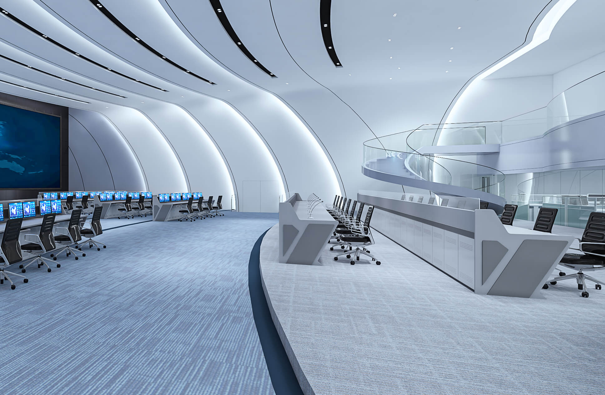 可根据指挥中心实景进行1:1高精度3D复刻建模,通过web端软件界面用鼠标、语音、触控等方式实现对现场音视频、环境(灯光、电源、温度)等进行身临其境的可视化控制体验