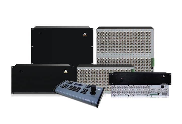 监控矩阵是一种集视频切换、音频切换、报警管理、跟随控制、IP网络选配控制于一体的完善的视频监控系统设备。可以把任何接