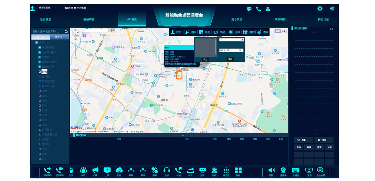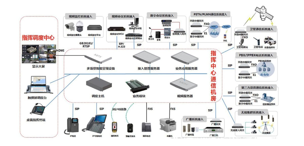 融合通信系统将语音、视频、数据进行高度融合,通过"一套平台一个操作台"即可实现对系统汇接的各类通信终端、视频终端、数据资源进行统一指挥调度,满足不同行业用户的各类日常管理和应急处置的指挥调度需求。