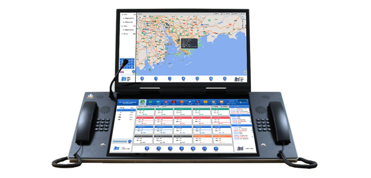 多媒体指挥调度台:采用双21.5英寸LCD工业级触摸屏作为载体,造型美观大方,用手指直接在屏幕上触摸点击拨号呼叫或查看设备运行情况,支持10点触控操作、全手势操作模式及全角度调节,含双手柄。与调度服务器配合,集语音、视频、数据通信调度于一体。