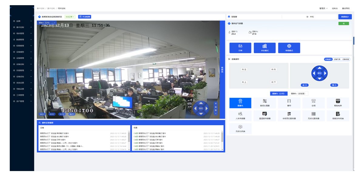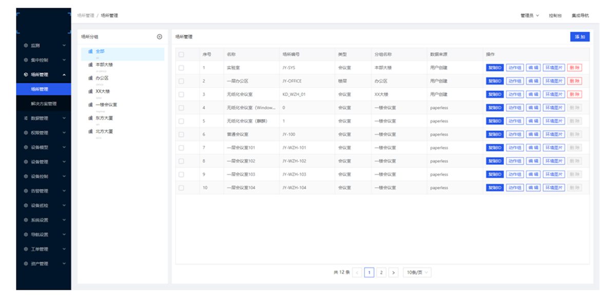 ①房间运维:整合空间范围内的设备信息,针对灯光、空调、新风、窗帘、门禁、中控等设备运维管理及控制。