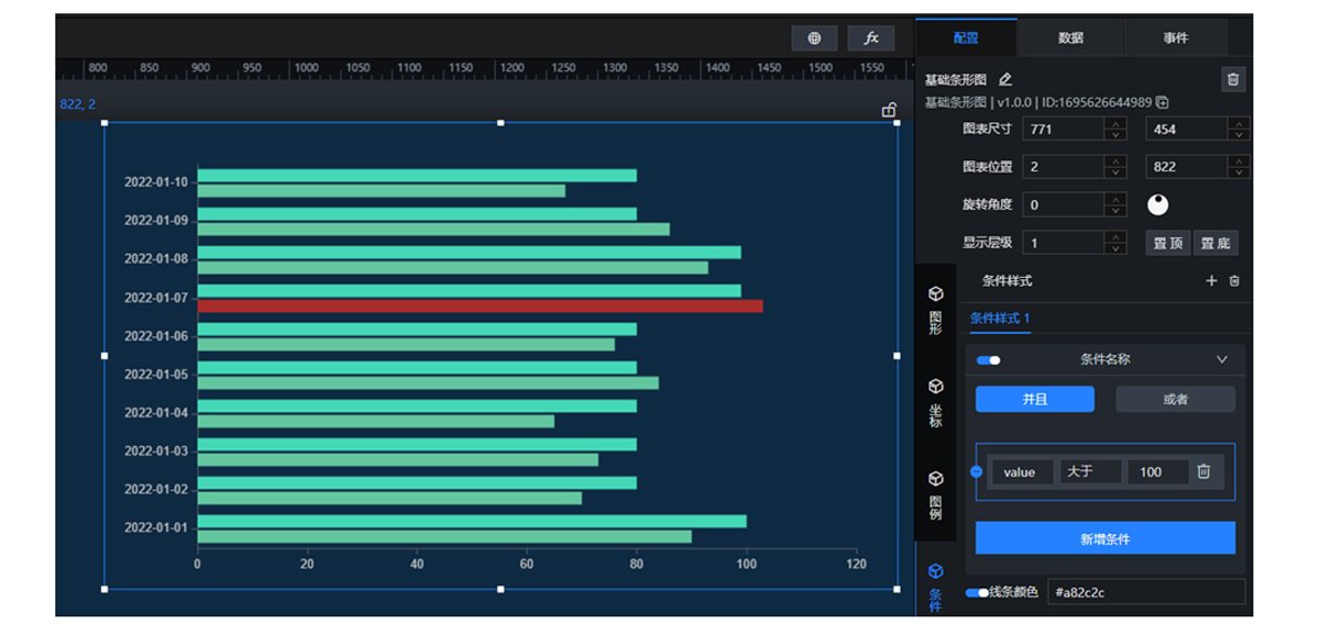 4、全面采集不同层级数据,实现业务与IT数据融合分析与大屏展示;根据条件来设置服务器内部数据的显示或行为,当前设备数据可以选择自定义编辑。如用图表去统计数据时,当某个数据值达到条件设定值时,会用其他颜色来做重点标记。