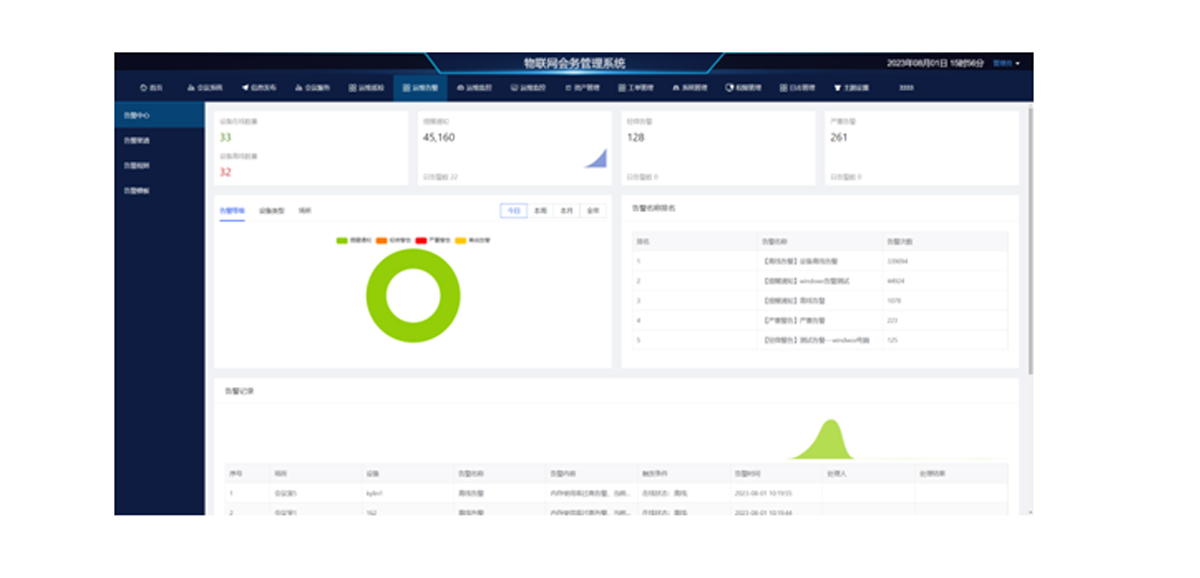 ②为方便管理人员统计分析设备的告警情况,在此功能下详细的统计并展示设备告警记录、告警等级、告警次数等信息;