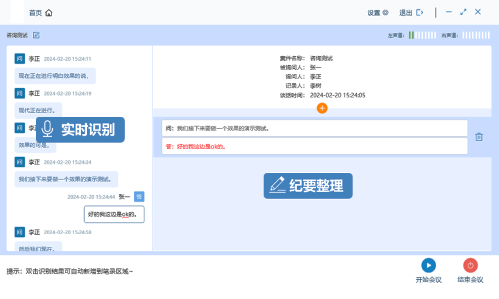 4、多角色区分:自动识别并区分审讯员、被审讯人等不同角色的发言,使记录更加清晰有序。